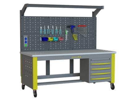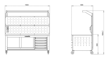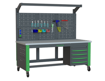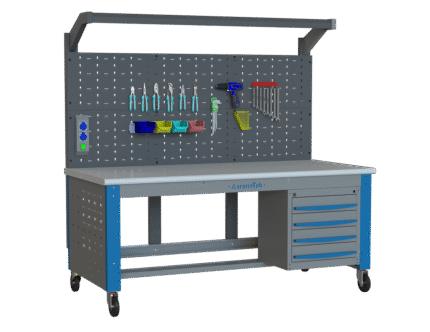 - سطح عمل من الفولاذ المقاوم للصدأ وجزء داخلي من الخشب الأحمر.