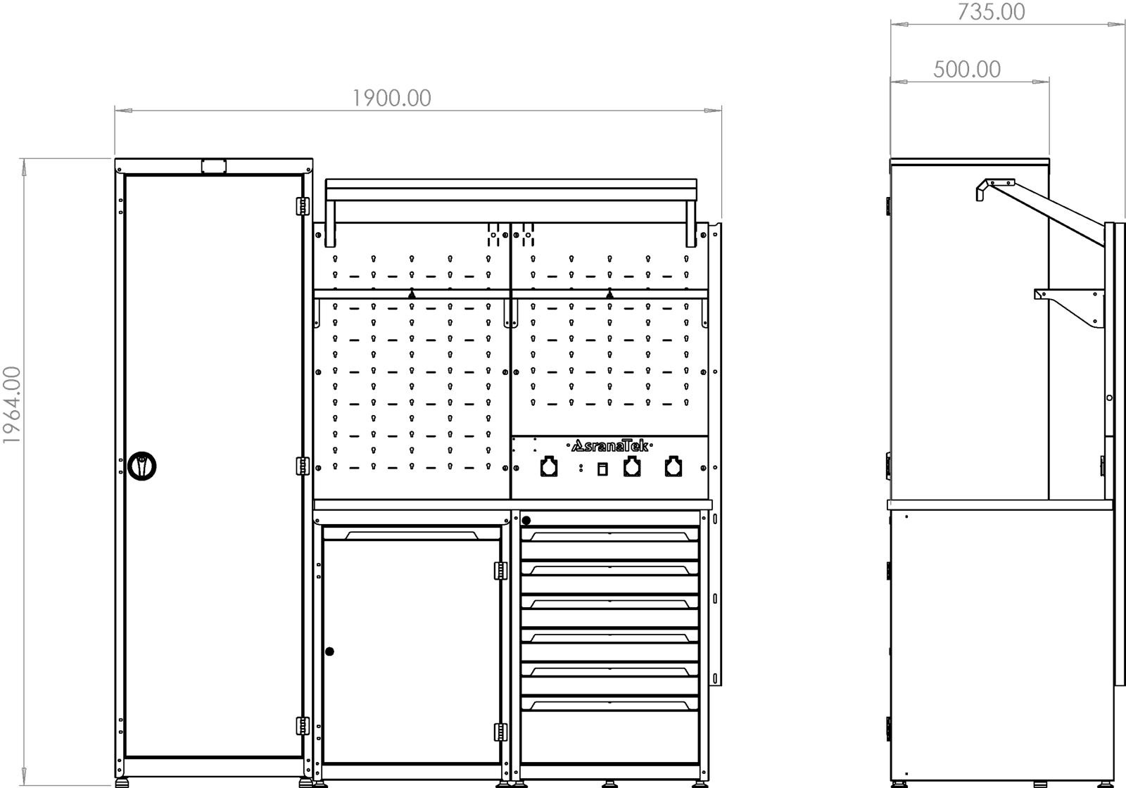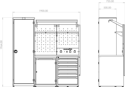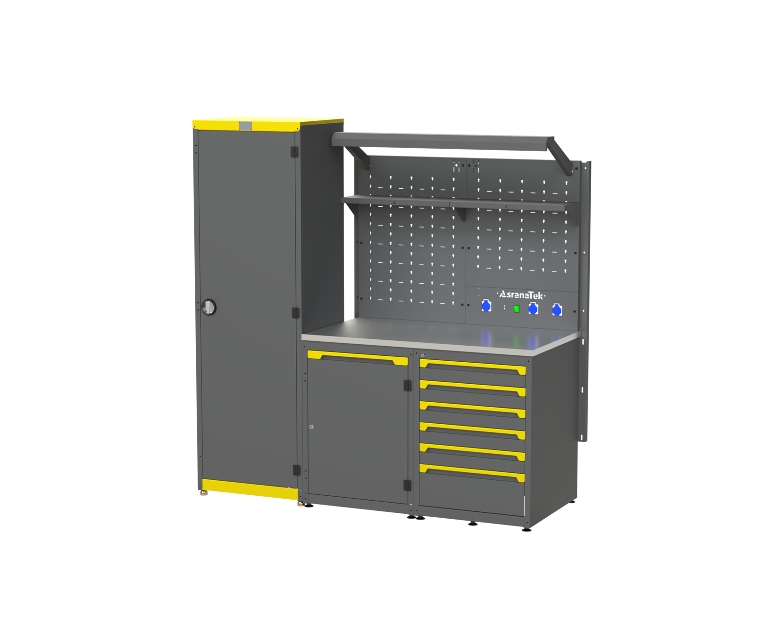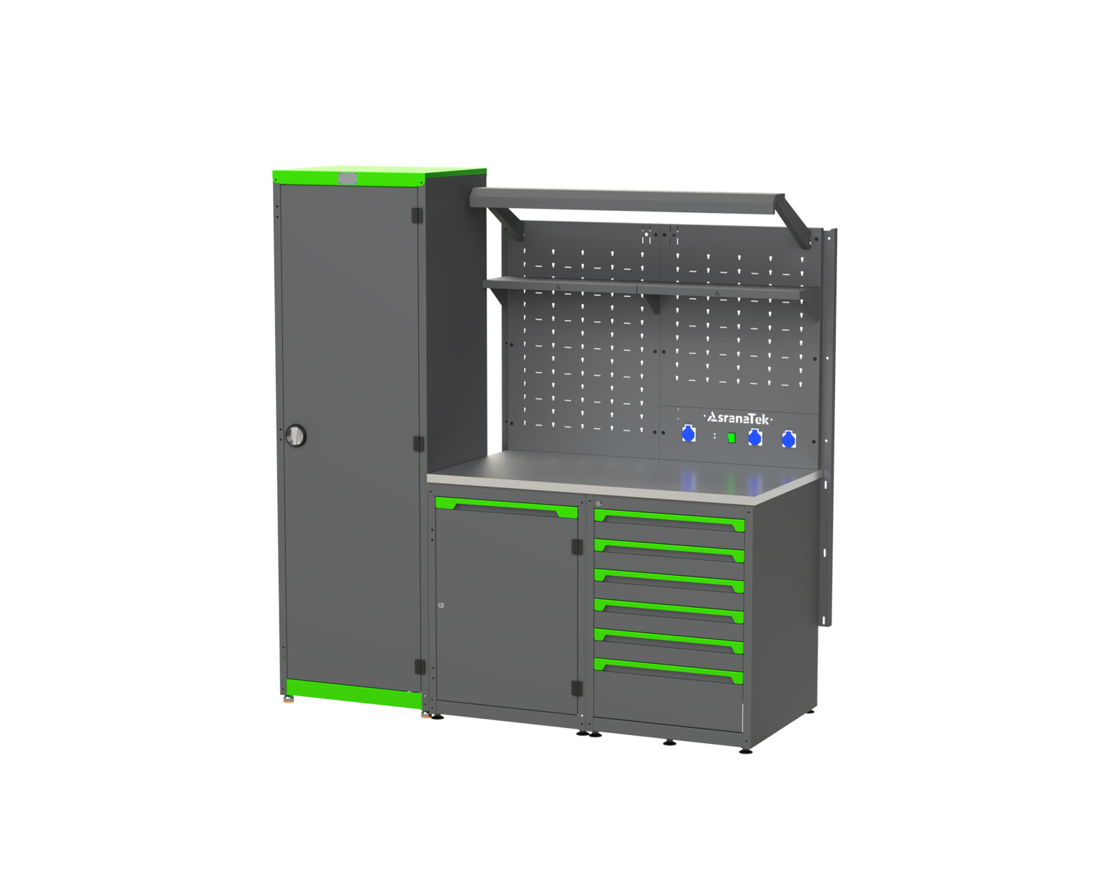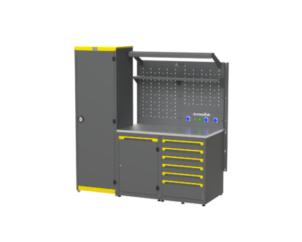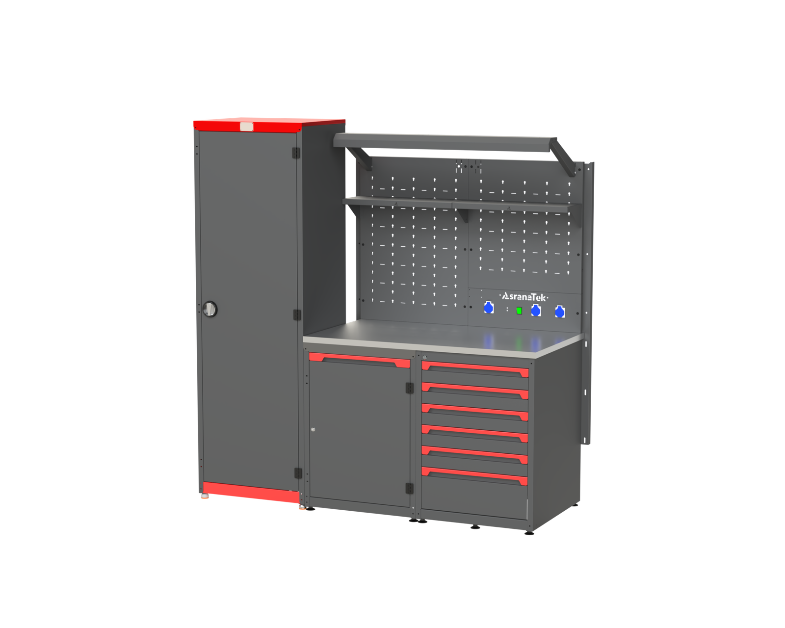 - سطح عمل من الفولاذ المقاوم للصدأ، وجزء داخلي من الخشب الأحمر