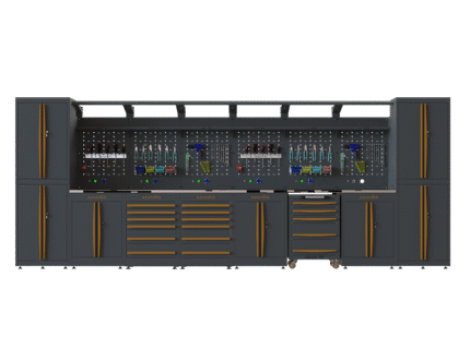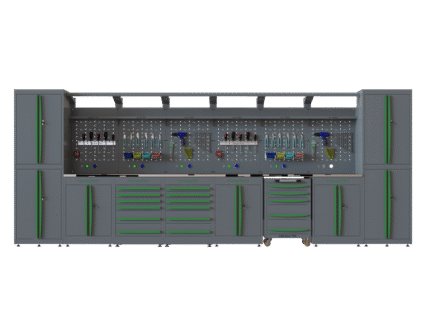 - سطح عمل من الفولاذ المقاوم للصدأ، وجزء داخلي من الخشب الأحمر